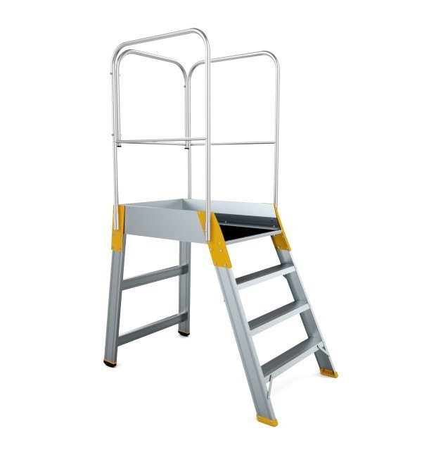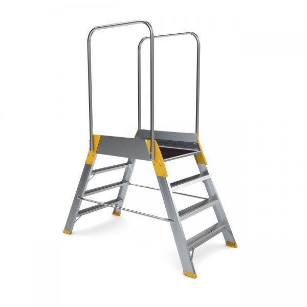 Obojstranný mostík vhodný pre výrobu alebo sklad. Nosnosť 150 kg. 03 – výška plošiny – 63 cm 04 – výška plošiny – 84 cm 05 – výška plošiny – 105 cm 06 – výška plošiny – 126 cm 07 – výška plošiny – 147 cm 08 – výška plošiny – 168 cm
