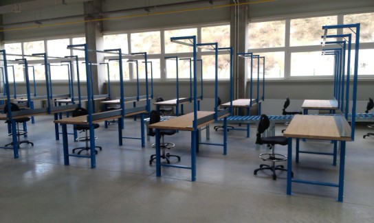 Základný dielenský stôl sa skladá s dvoch nôh ( či už pevných alebo výškovo nastaviteľných) a pracovnej dosky. Nohy sú z oceľového plechu s povrchovou úpravou a pracovná doska je s bukovej škárovky s hrúbkou 40 mm.