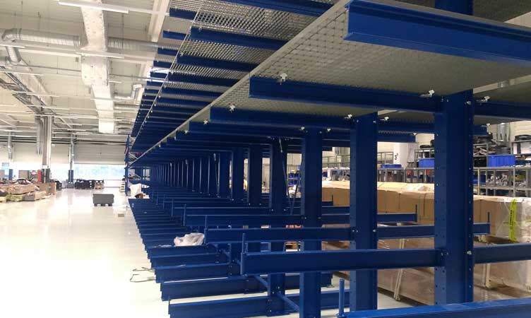 Konzolové regále boli doplnené o oceľové rošty. Toto riešenie umožňuje ukladať dlhé profily a zároveň aj kusový materiál.
