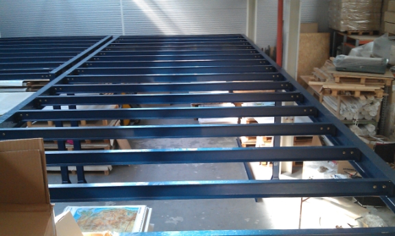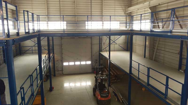 Dvoj poschodová oceľová plošina. Inštaláciou tejto plošiny zákazník zvýšil kapacitu haly o 360 m2.